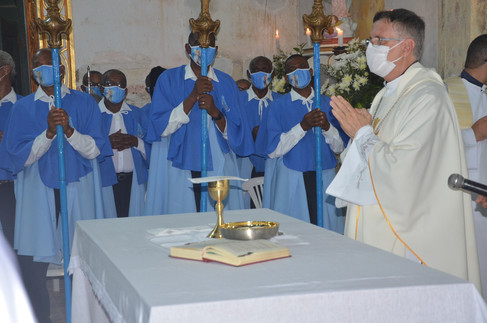 Às 16, iniciou a Santa Missa presidida pelo Bispo diocesano, Dom Antônio Tourinho, concelebrada pelo Padre Adeilson e esteve presente o Diác. Antonio do Amarante.
